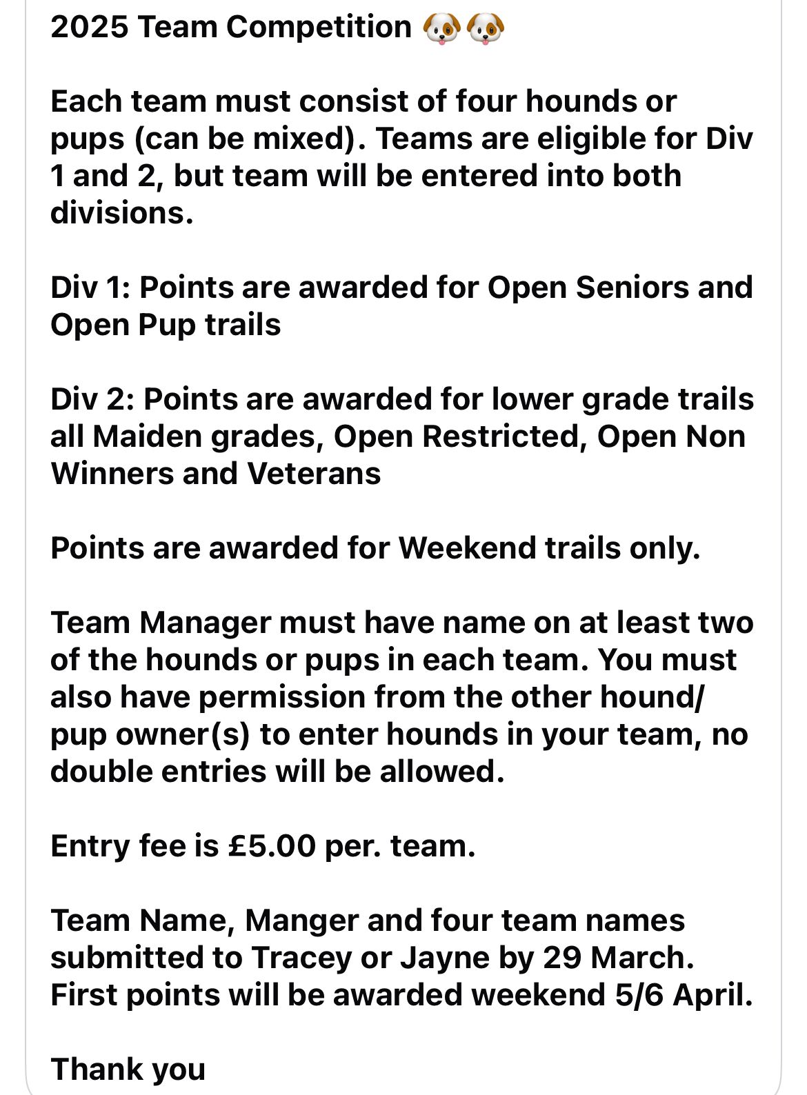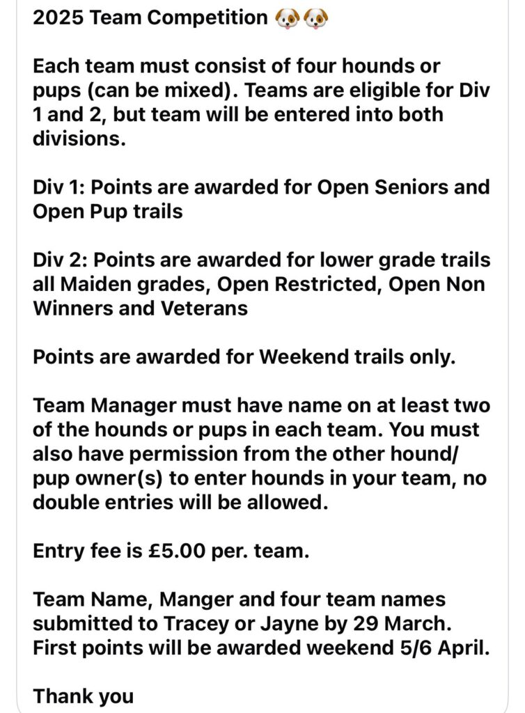 21st March 2025 – message re Teams Competition