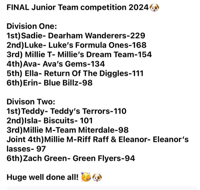 These are awarded to juniors who achieve 15 points in the Junior Club.